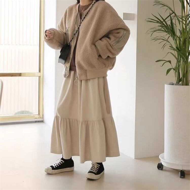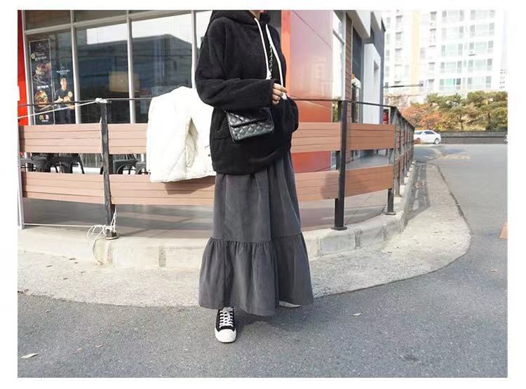 ◎【送料無料】今年売れてます コーデュロイ スカート ロングセクション 秋冬 女性 フリル フィッシュテールスカート