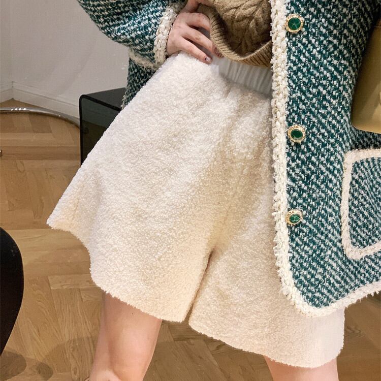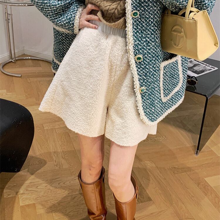 カジュアルパンツ 2021年秋冬新作 スリム 気質 ショートパンツ ウール ワイドパンツ