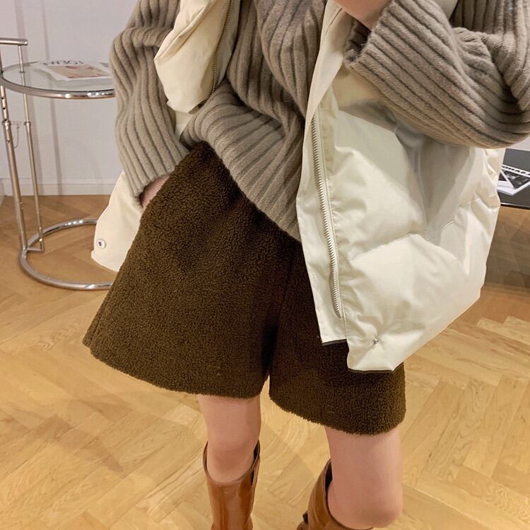 ◎【送料無料】カジュアルパンツ 2021年秋冬新作 スリム 気質 ショートパンツ ウール ワイドパンツ
