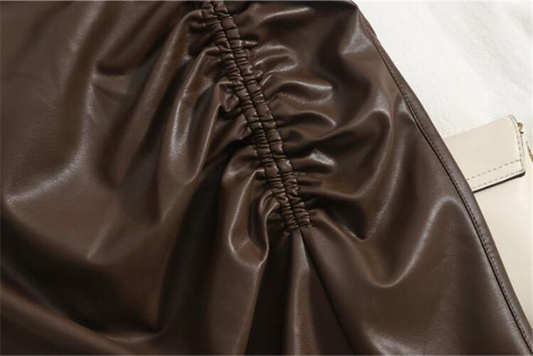 2021年秋 ハイウエスト タイトスカート PUレザースカート プリーツ スプリット