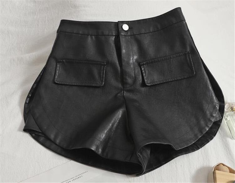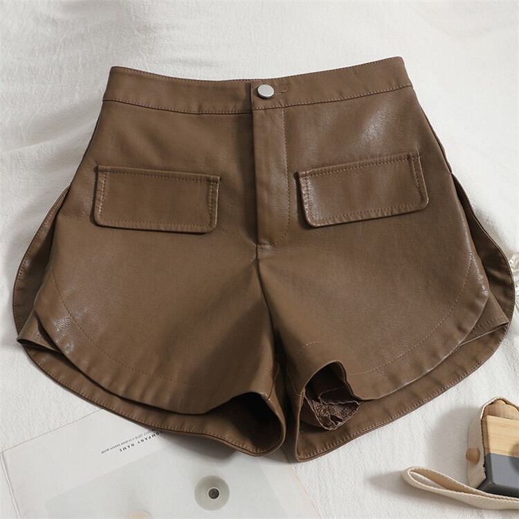 ◎【送料無料】秋 PUレザーパンツ ハイウエスト ショートパンツ スリム ワイドパンツ ファッション