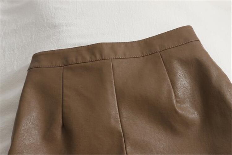 秋 PUレザーパンツ ハイウエスト ショートパンツ スリム ワイドパンツ ファッション