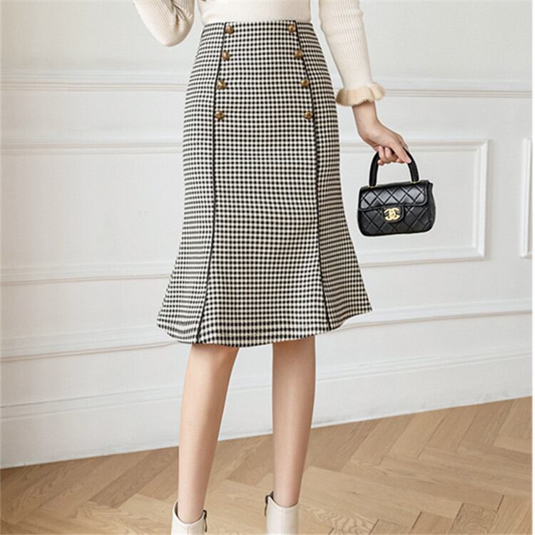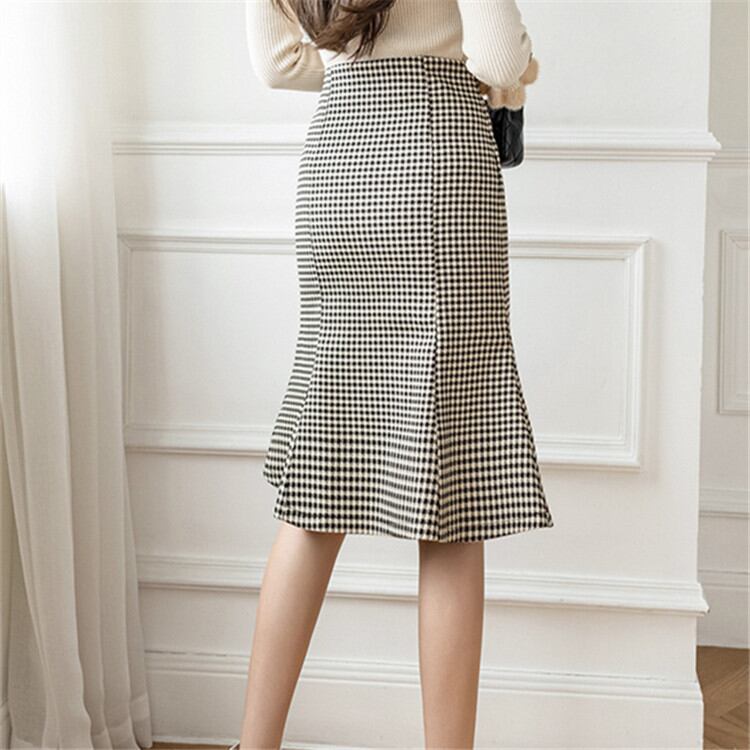 ◎【送料無料】フィッシュテールスカート OL シンプル 2021年秋冬新作 レトロ フリル 格子縞