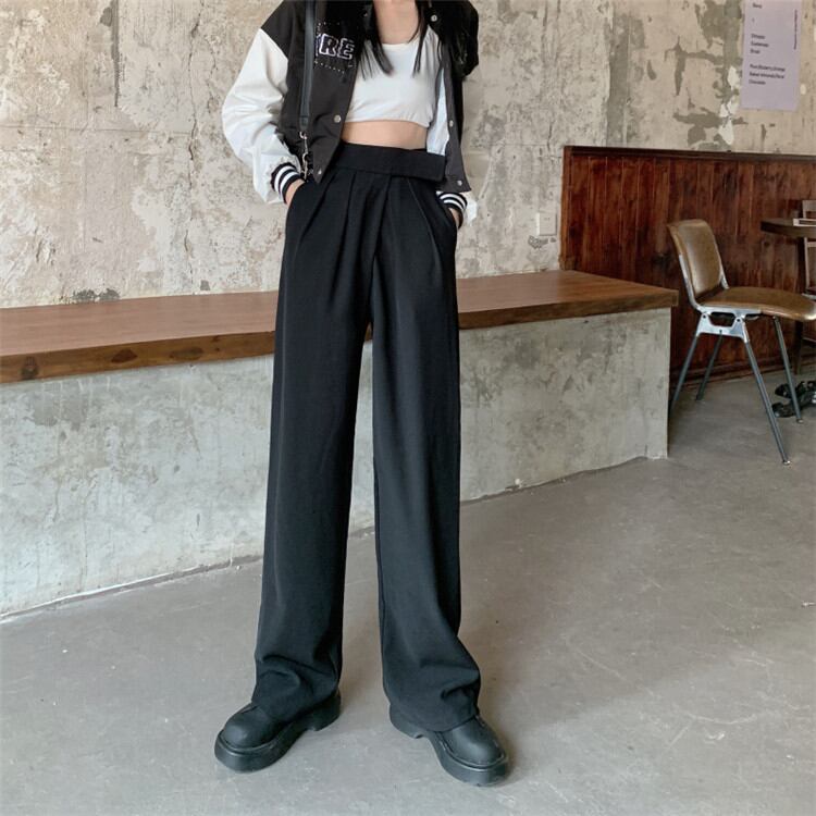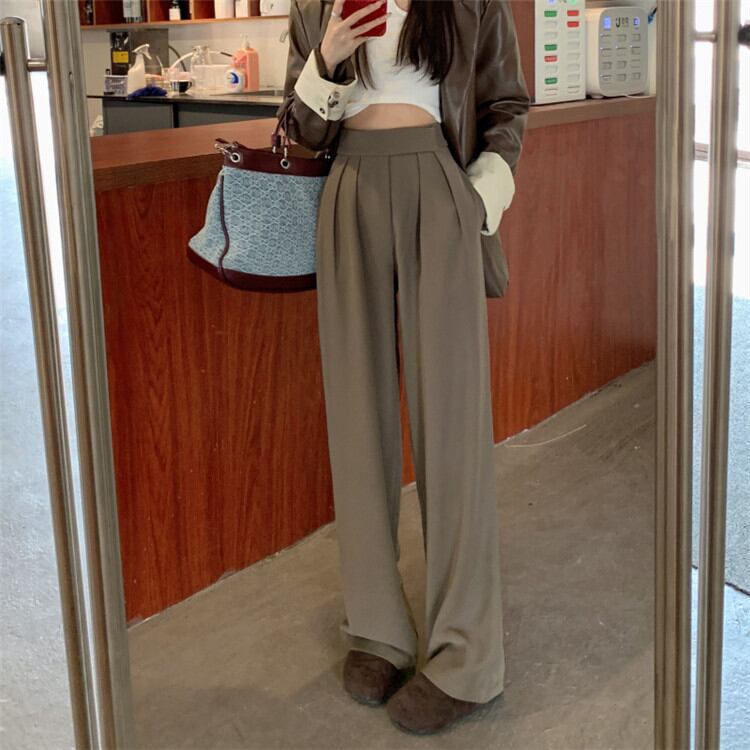 ワイドパンツ シンプル ハイウエスト ゆったりする スリム カジュアルパンツ