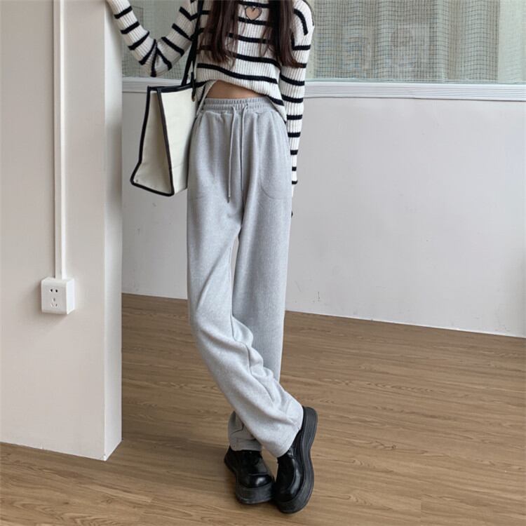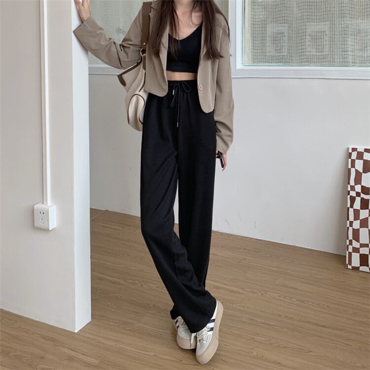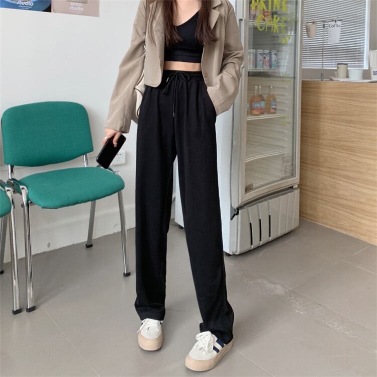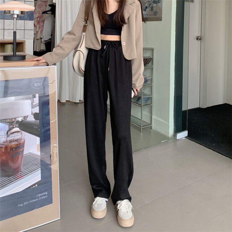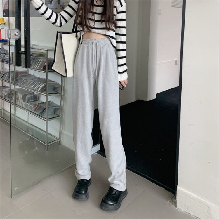 スリム カジュアルパンツ ワイドパンツ 伸縮性のあるウエスト ロングパンツ
