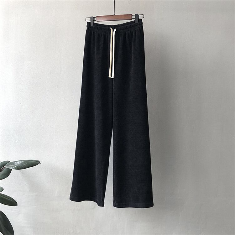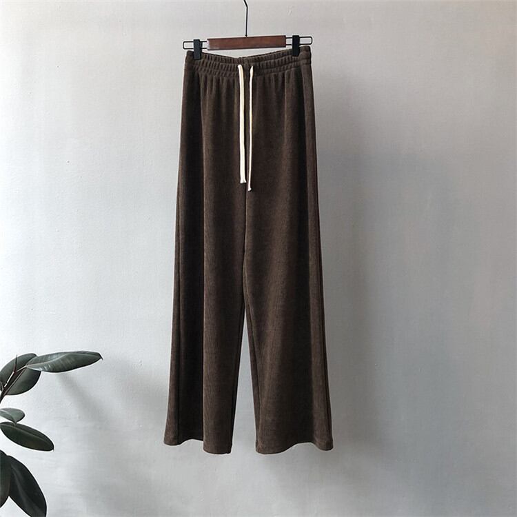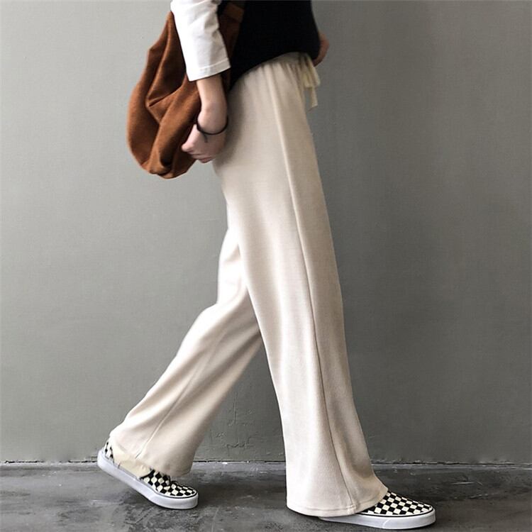 韓国版 伸縮性のあるウエスト ゆったりする ロングパンツ 女性 ワイドパンツ カジュアルパンツ