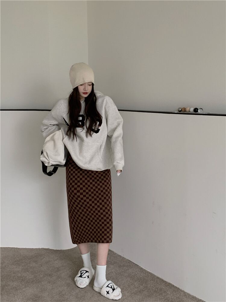ハイウエスト スプリット タイトスカート ロングスカート レディース チェック柄