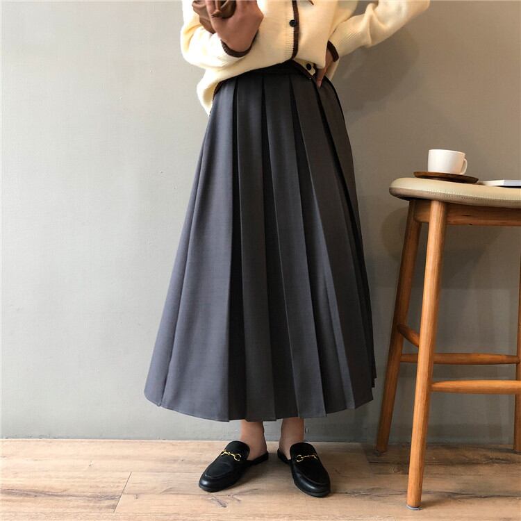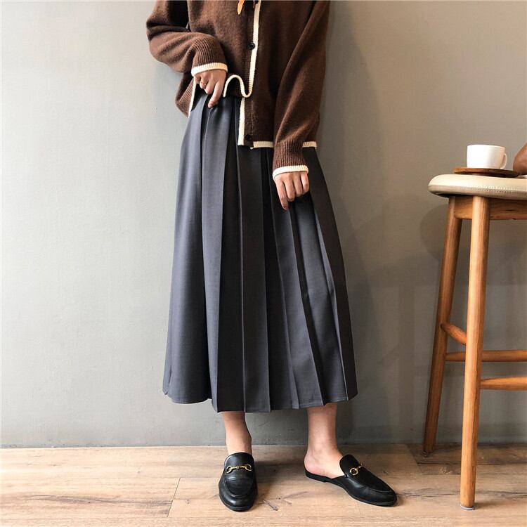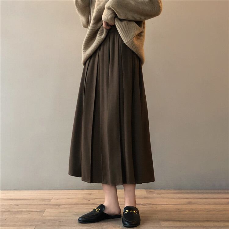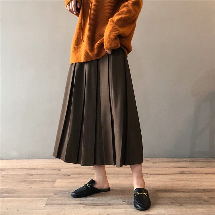 2021年秋 冬 新作 韓国版 気質 ゆったりする 中・長セクション プリーツスカート ピュアカラー