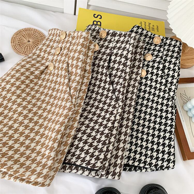 イレギュラー ショートパンツ ハイウエスト ファッション 千鳥格子 ダブルボタン