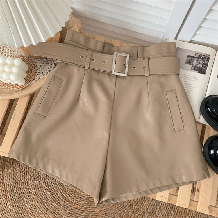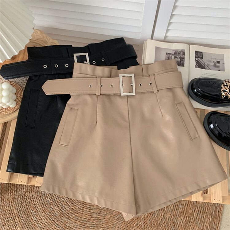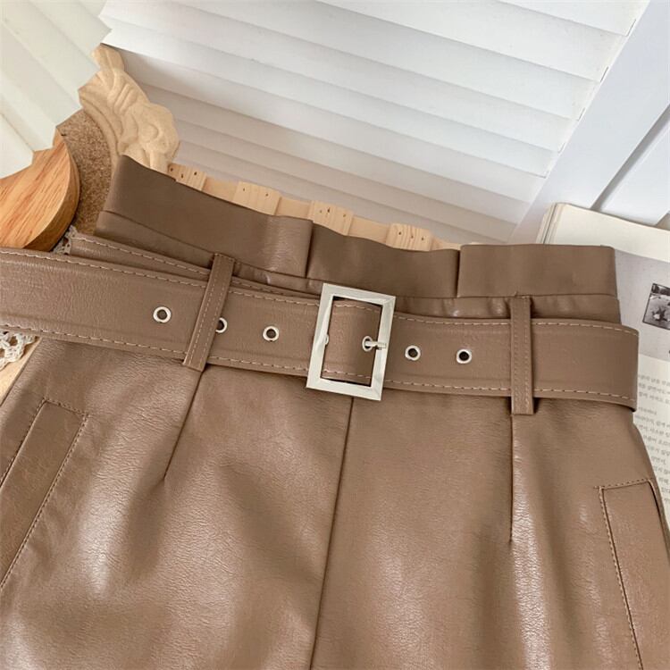 ◎【送料無料】PUレザー ハイウエスト ショートパンツ 2021年秋冬新作 ファッション ベルト付き