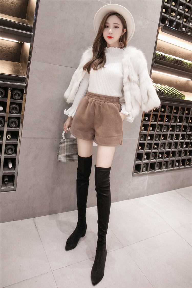 ミンク 冬の新作 ハイウエスト カジュアル 厚手 パンツ 気質 ショートパンツ