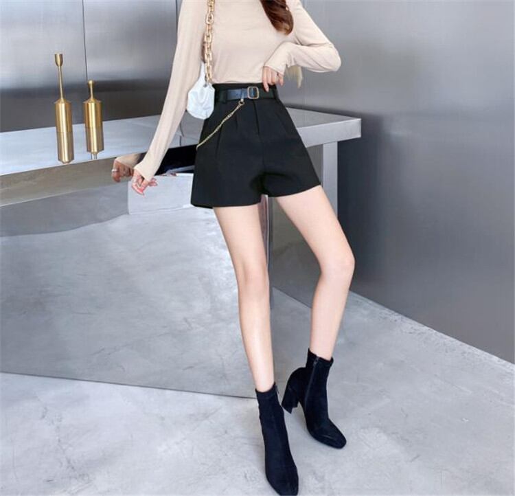 スーツ ショートパンツ レトロ ハイウエスト ワイドパンツ ベルト付き