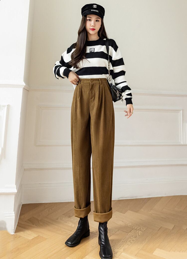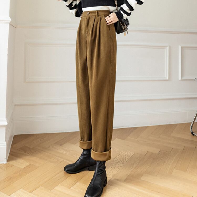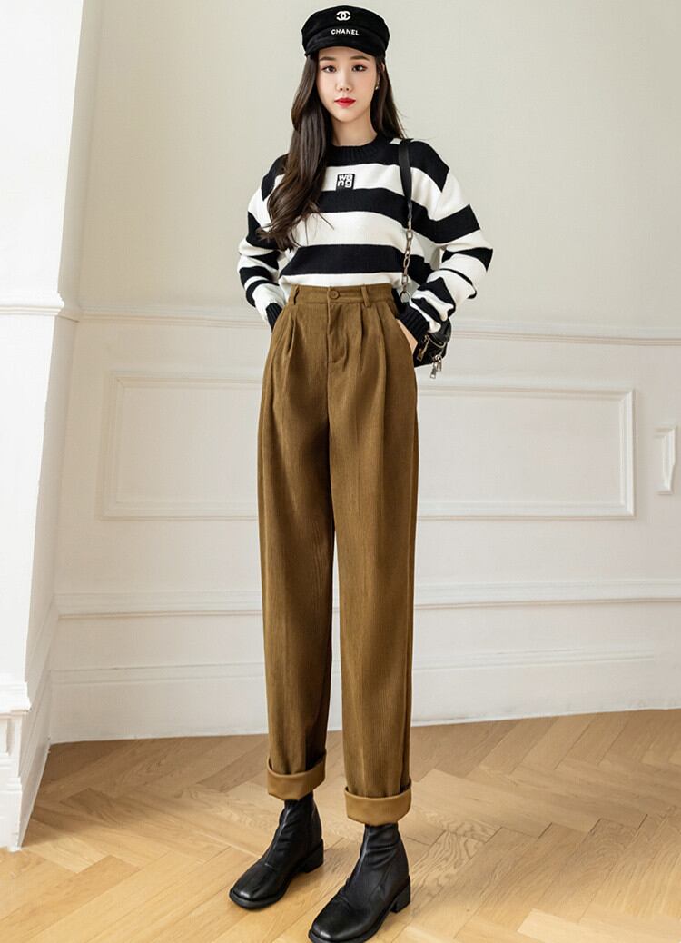 ◎【送料無料】コーデュロイ カジュアルパンツ 気質 2021秋冬 ハイウエスト パンツ スリム