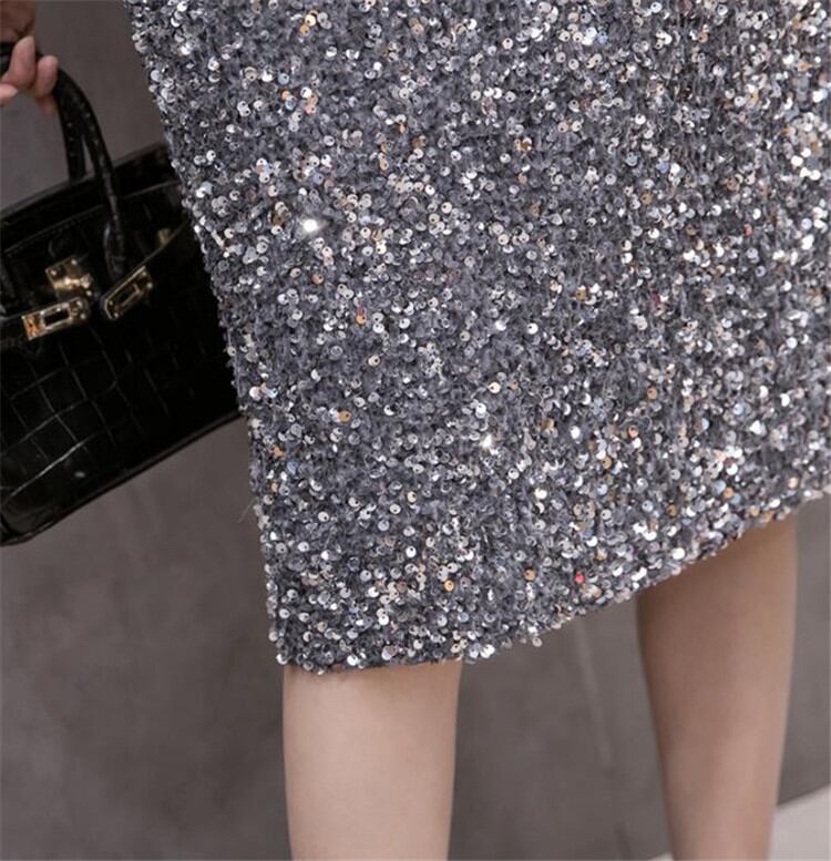 ◎【送料無料】ハイウエスト タイトスカート スパンコール 2021年秋冬新作 中・長セクション