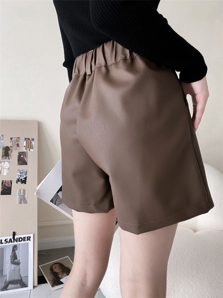 2021年秋新作 ハイウエスト ゆったりする ファッション PU ショートパンツ