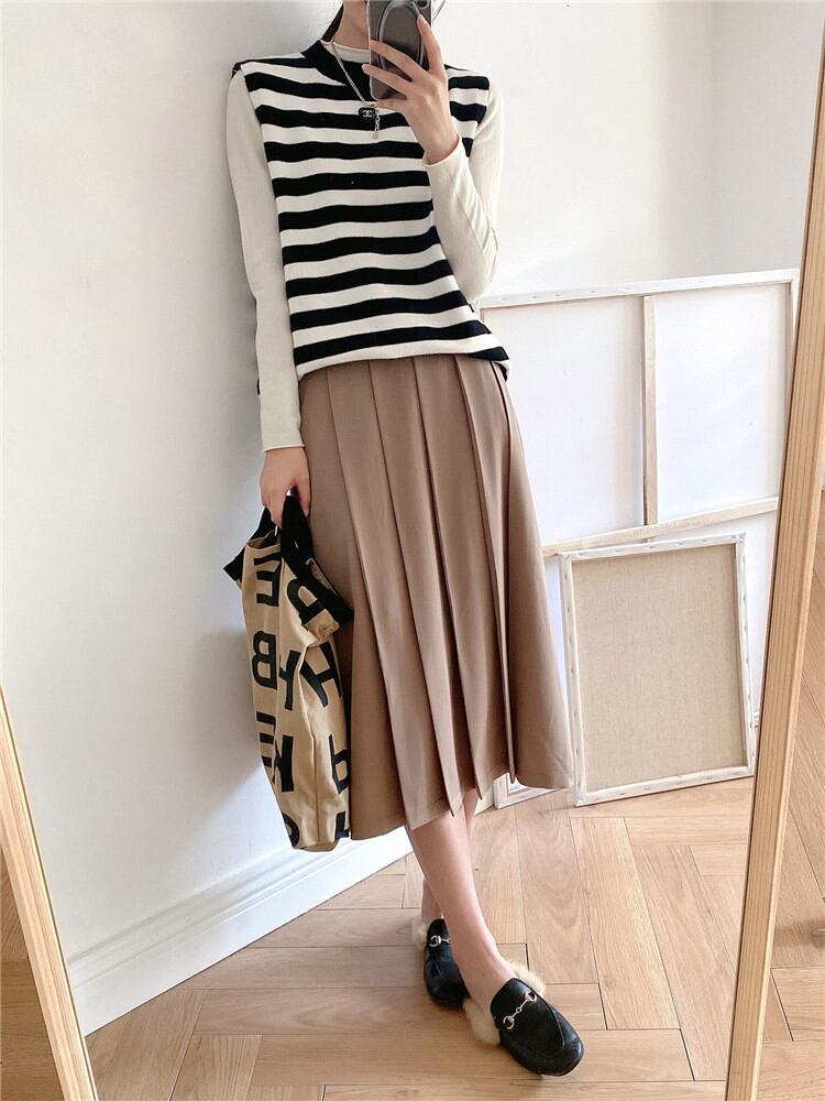 秋の新作 レディース ハイウエスト 中・長セクション スーツ プリーツスカート