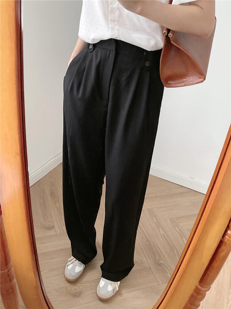 ◎【送料無料】秋の新作 レディース ストレート ハイウエスト ワイドパンツ スーツパンツ スリム