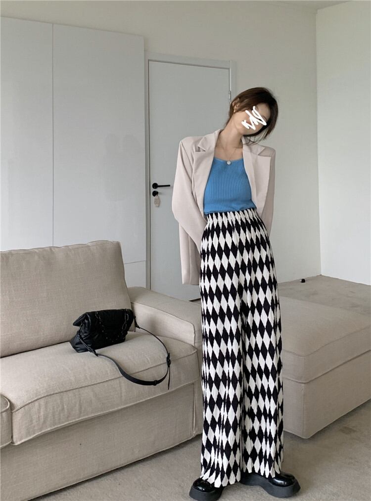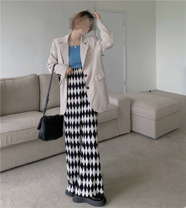 チェック柄 カジュアルパンツ 秋 ロングパンツ ハイウエスト ゆったりする ワイドパンツ