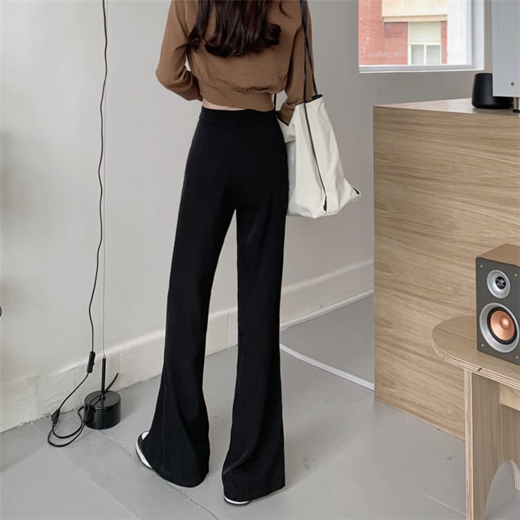 ◎【送料無料】秋新入荷 ブラック スーツパンツ スプリット ハイウエスト スリム カジュアル パンツ フレアパンツ