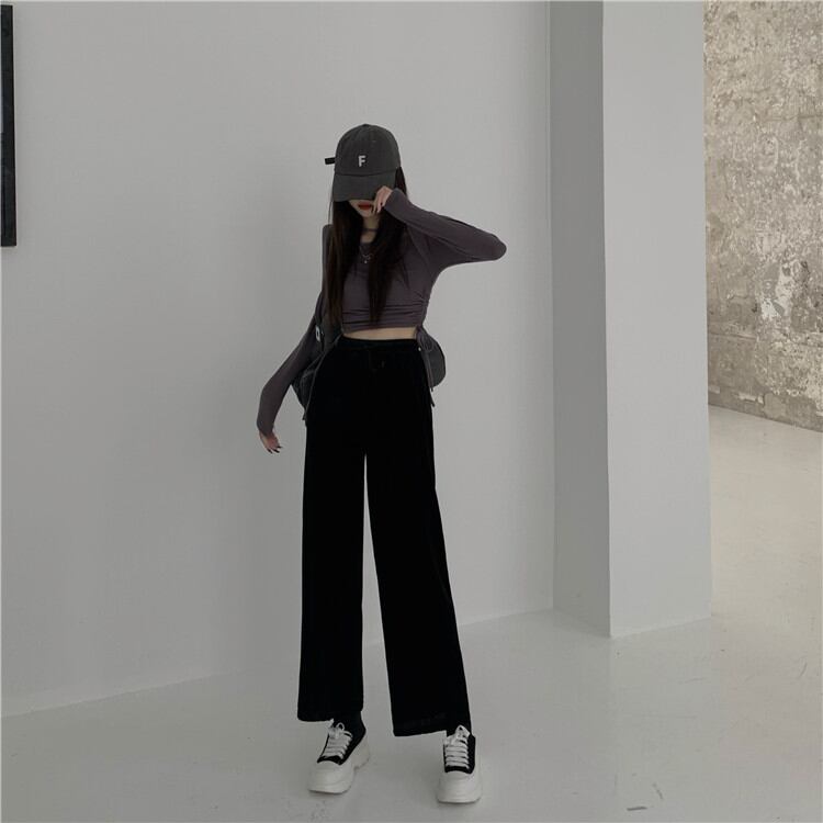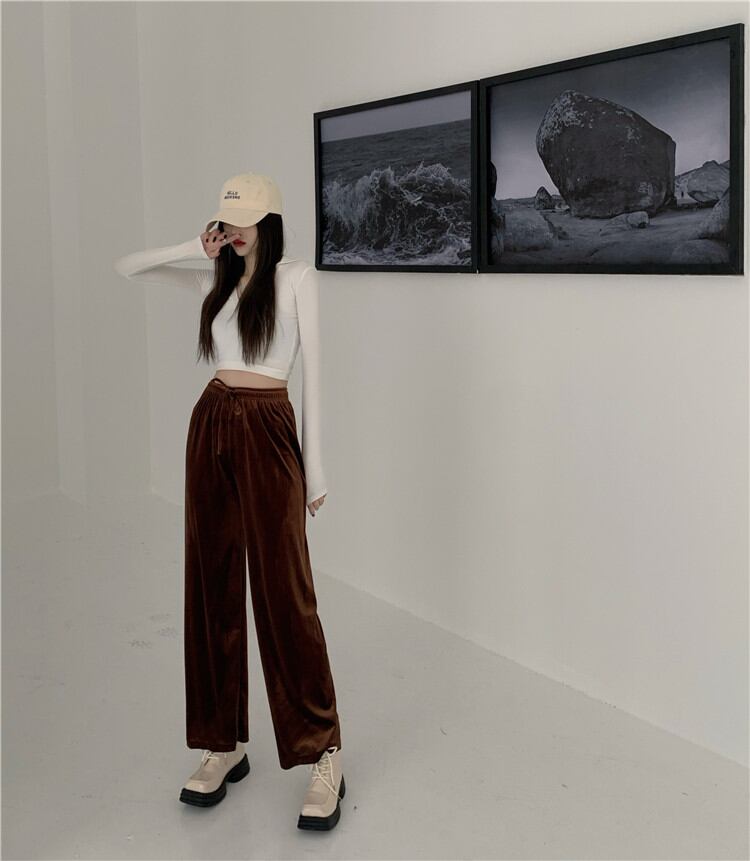 ゴールドベルベット ロングパンツ ハイウエスト ゆったりする スリム カジュアル