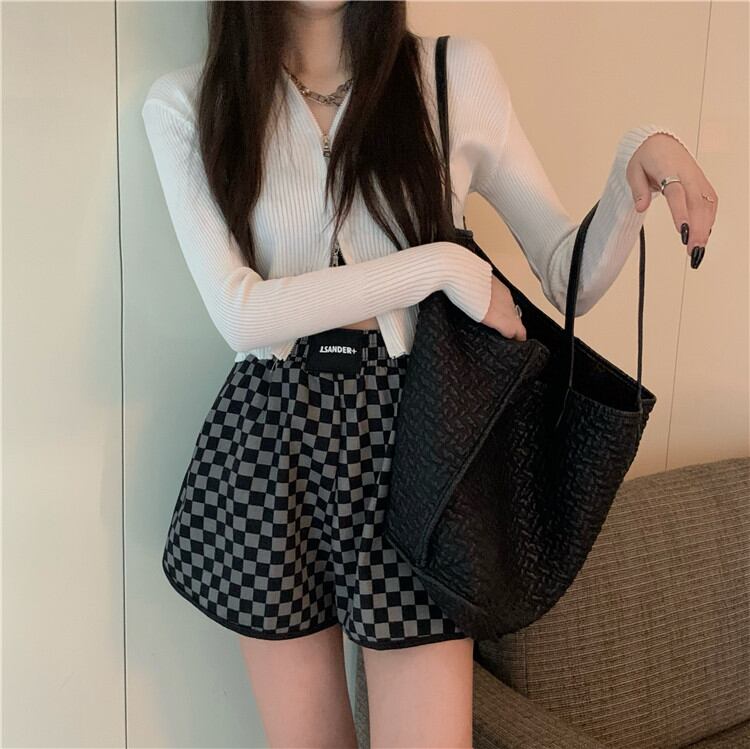 チェック柄 伸縮性のあるウエスト ショートパンツ ハイウエスト カジュアル 大人気
