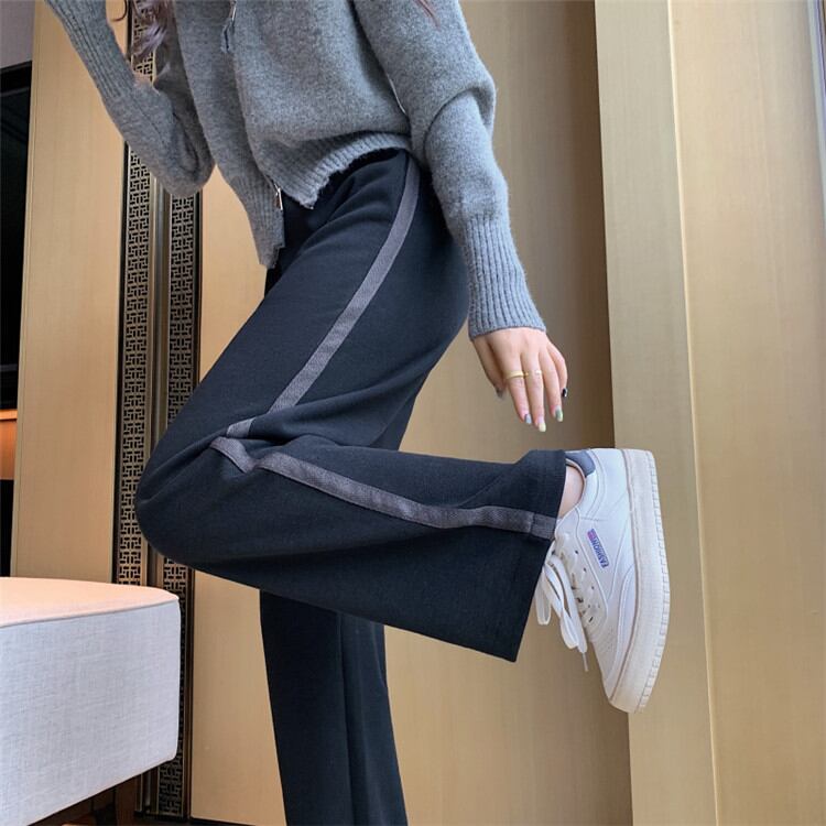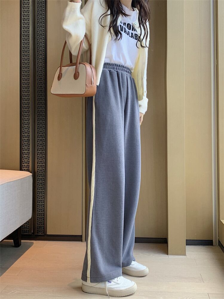 ハイウエスト スリム ワイドパンツ カジュアルパンツ ロングパンツ ゆったりする