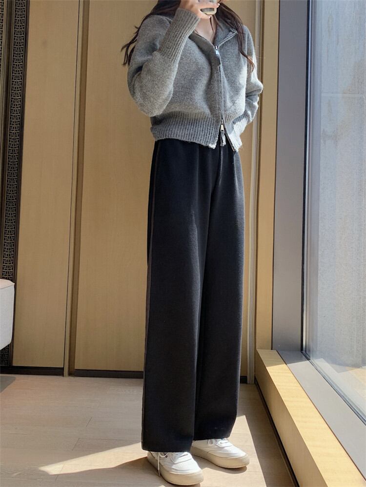 ◎【送料無料】冬コーデに欠かせない 大人気 ハイウエスト スリム ワイドパンツ カジュアルパンツ ロングパンツ