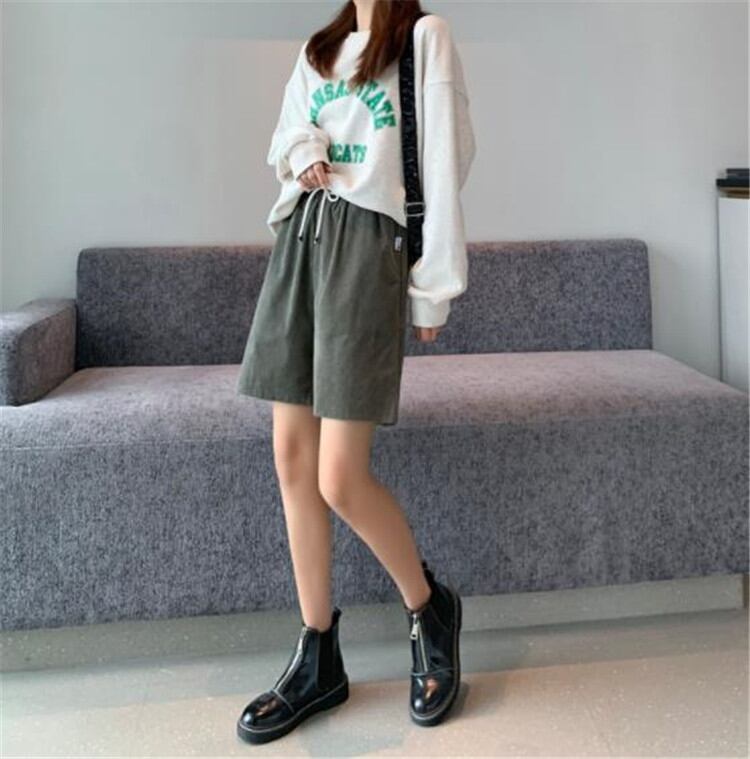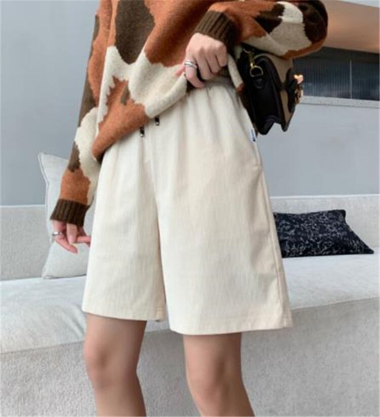 ◎【送料無料】簡単スタイルアップ コーデュロイ ショートパンツ 伸縮性のあるウエスト ゆったりする カジュアル