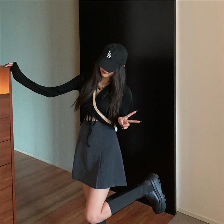 トレンド ハイウエスト Aラインスカート スリム ピュアカラー スカート ミニスカート