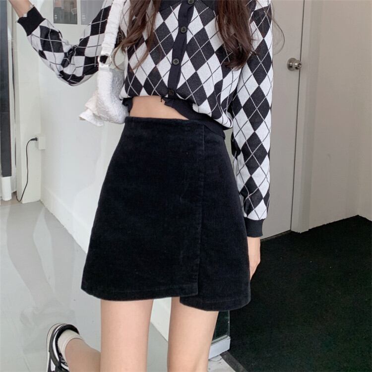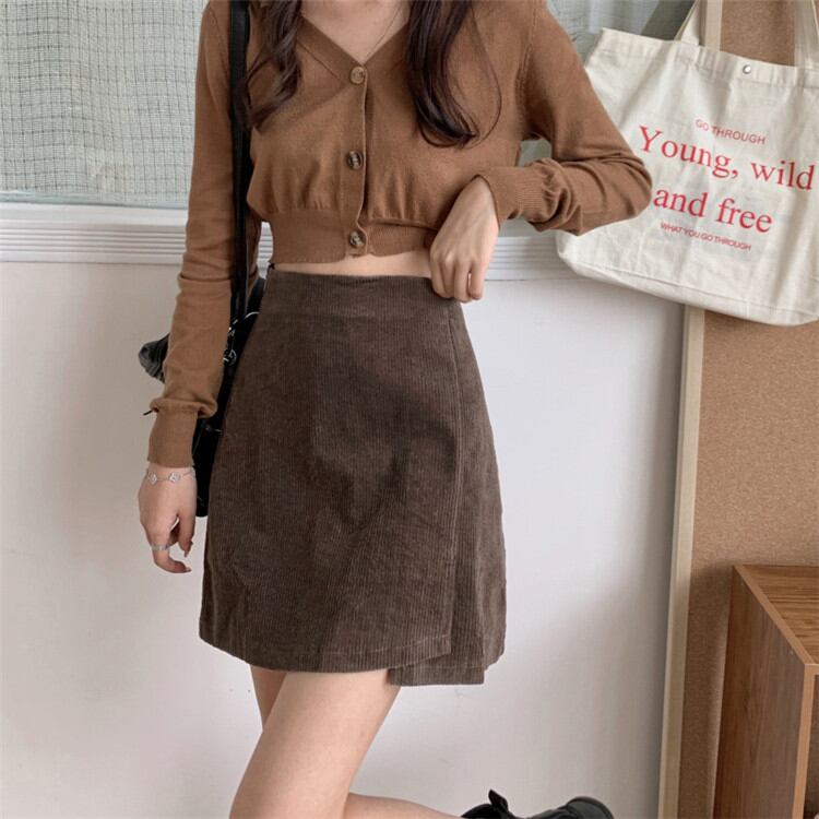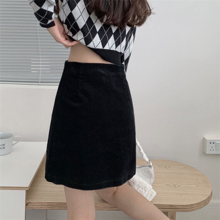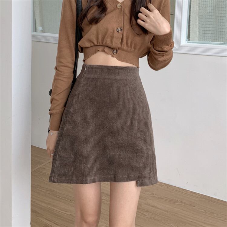 ◎【送料無料】大人カジュアルを極める コーデュロイ スカート ハイウエスト Aラインスカート レトロ ピュアカラー