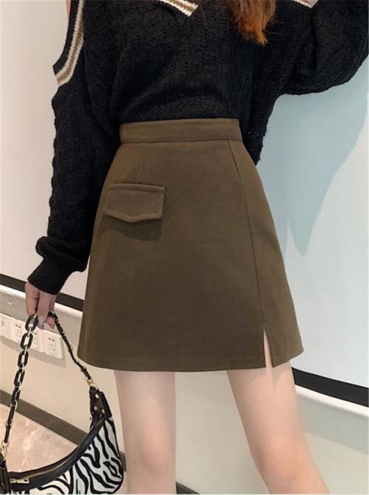 ◎【送料無料】細見えする ハイウエスト 秋 冬 スリム Aライン カジュアル 大人気 タイトスカート