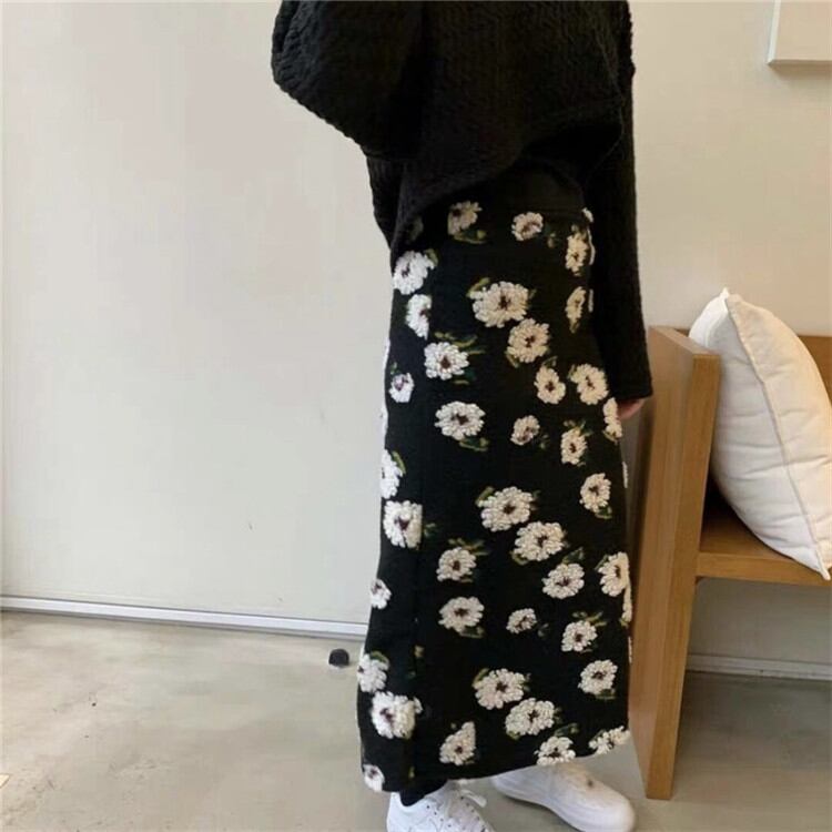 レトロ 花柄 厚手 タイトスカート 中・長セクション スカート エレガント ヤングスタイル