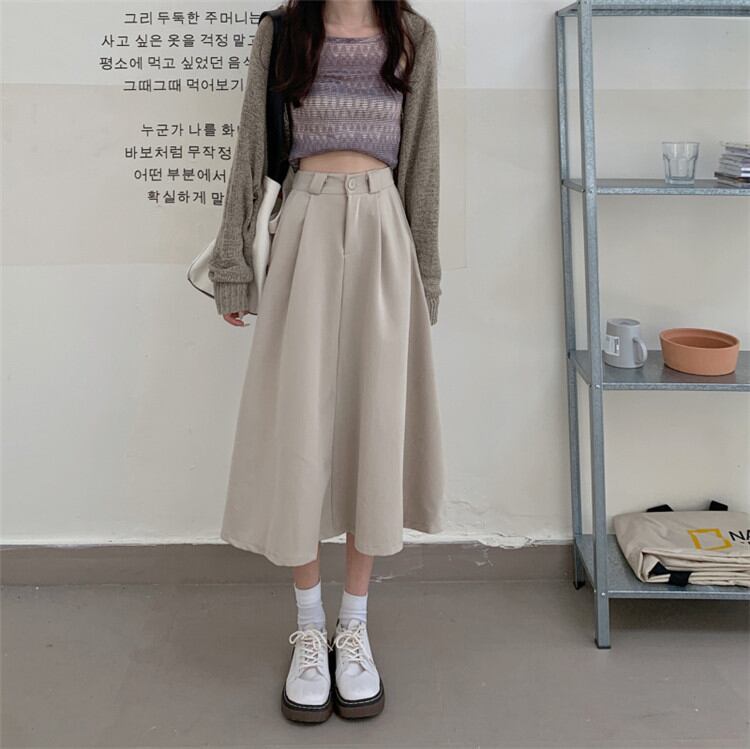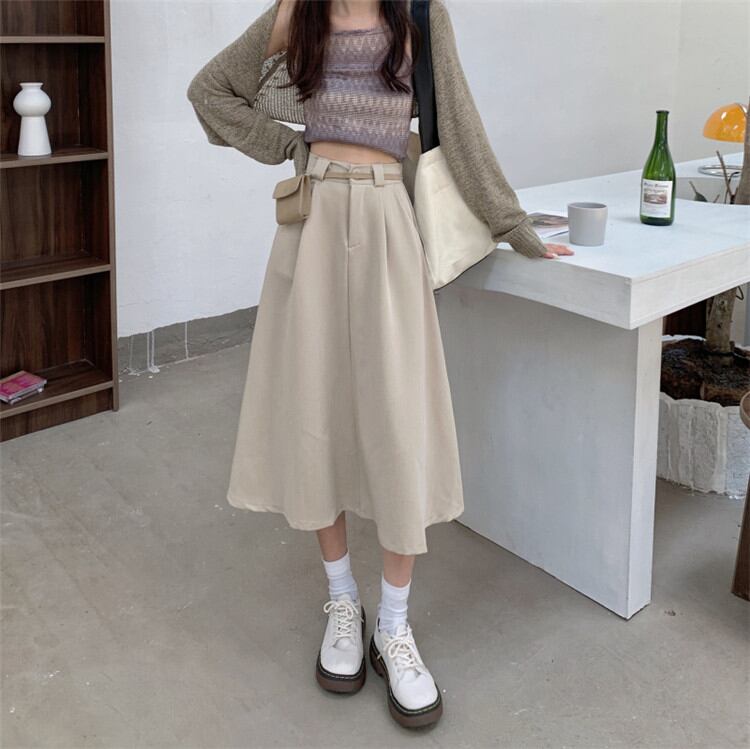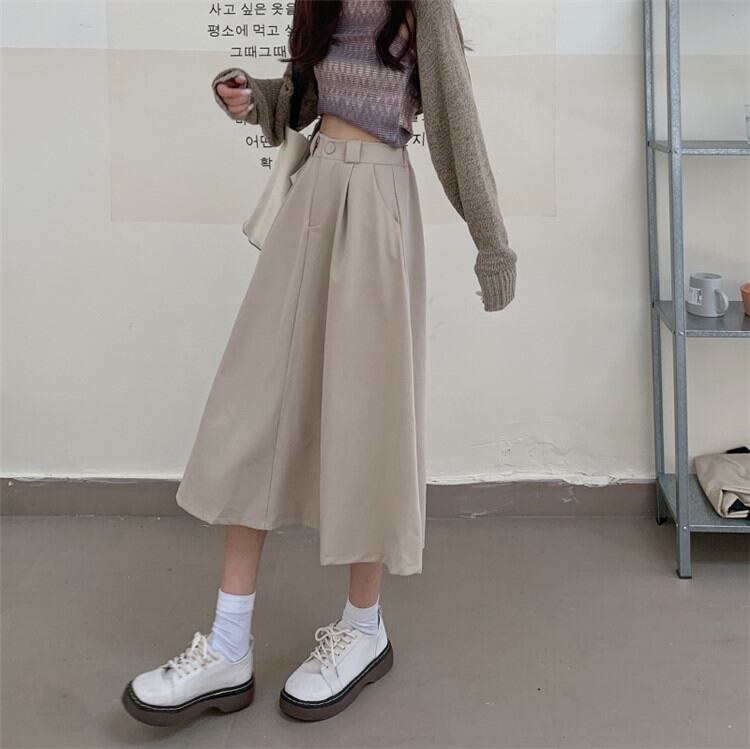 ◎【送料無料】これからの季節はシャツの出番 ハイウエスト スリム スカート Aラインスカート 中・長セクション シンプル