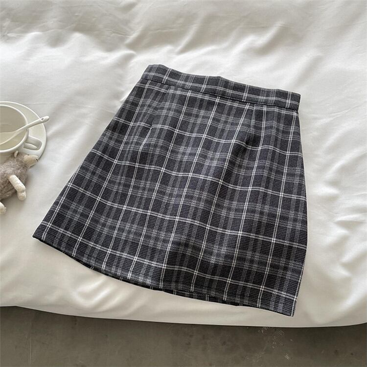 ◎【送料無料】おしゃれに見えるシンプルコーデに チェック柄 ミニスカート 女性 2021年秋冬 新作 レトロ ハイウエスト