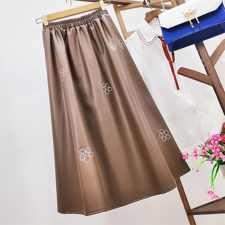 ◎【送料無料】2021年秋冬新作 中・長セクション ししゅう スカート ハイウエスト スリム 大きい裾