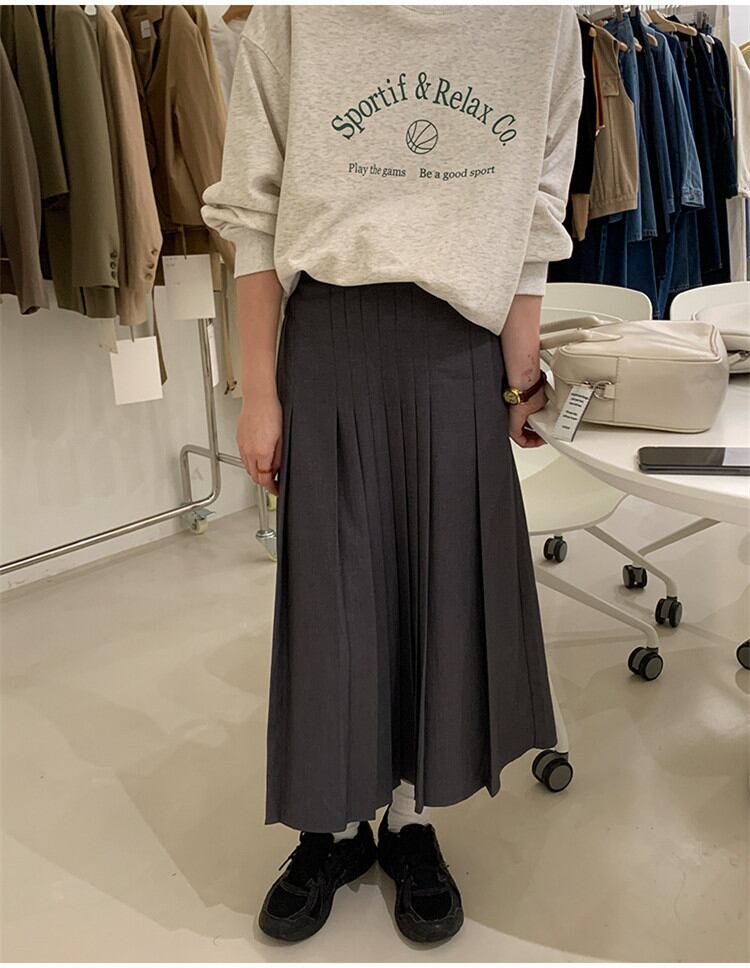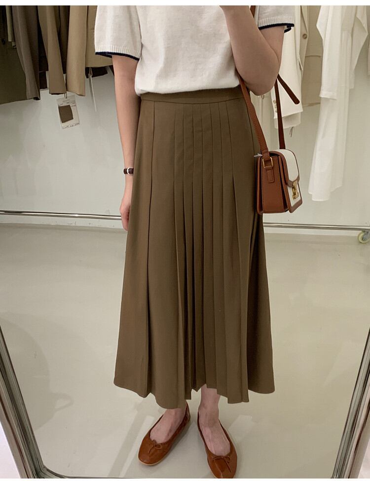 スカート スリム 気質 Aライン 秋の新作 ハイウエスト プリーツ ロングスカート