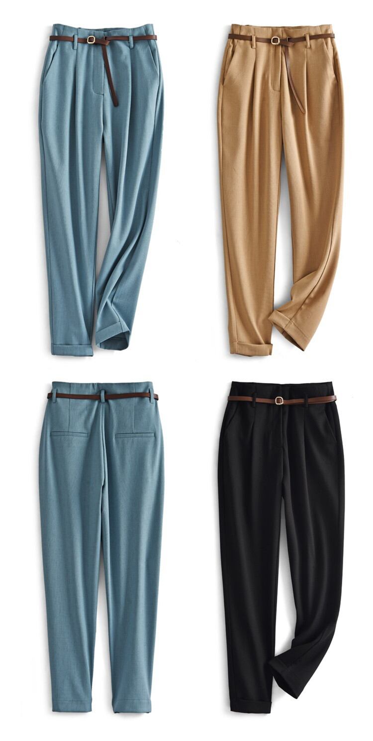 ◎【送料無料】ロングパンツ ハイウエスト 気質 テーパードパンツ ベルト付き スリム