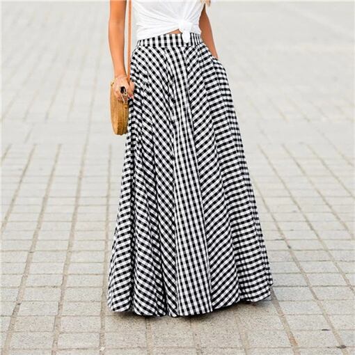 ◎【送料無料】ギンガムチェックロング丈フレアスカート マキシスカート ギンガムチェック柄 レディース 春夏