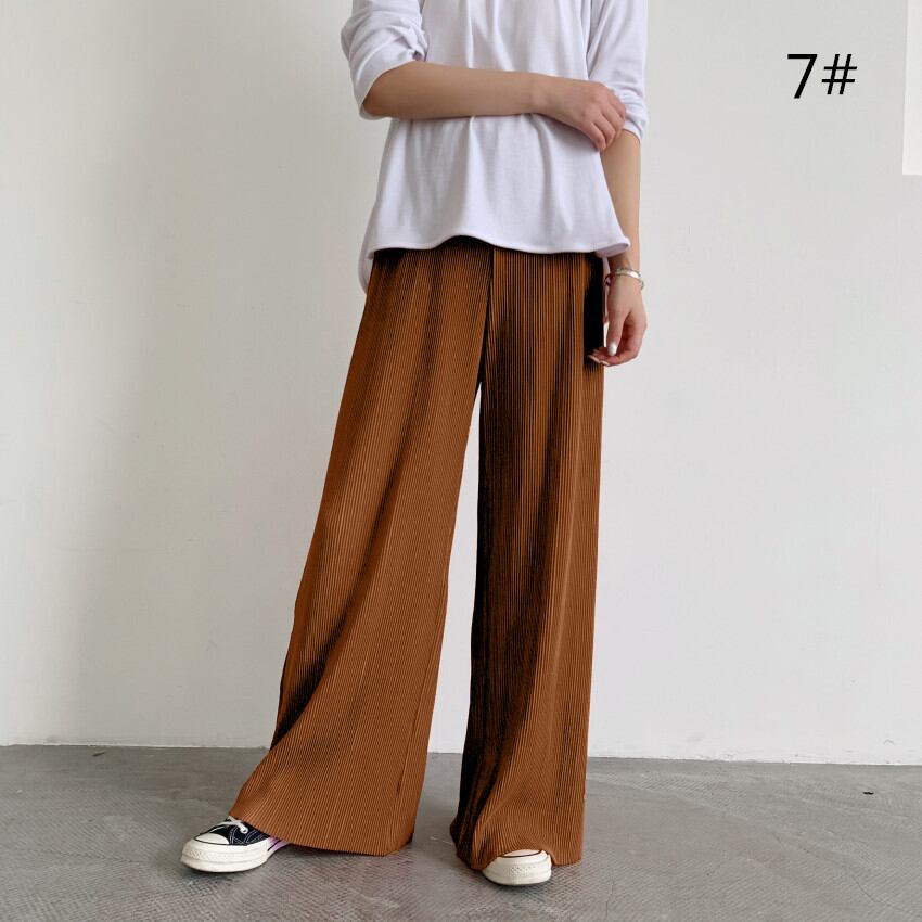 ◎【送料無料】2021新作 プリーツパンツ ワイドパンツ セルフカット 全13色展開 大きいサイズ ウエストゴム 着痩せ