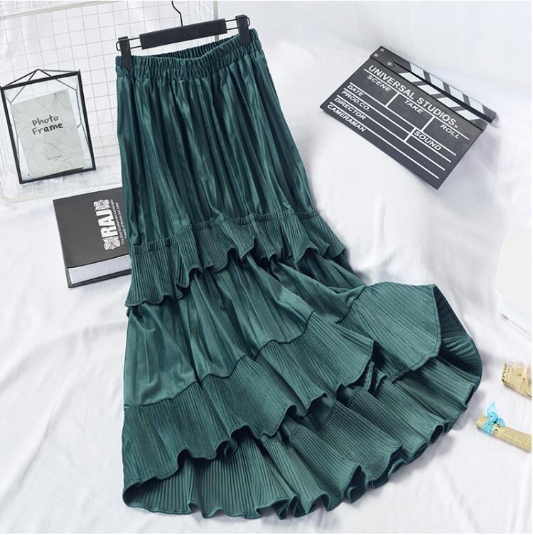 ◎【送料無料】早い者勝ちc ハイウエストプリーツスカートロングスカートゴールドベルベット 減齢 スカート