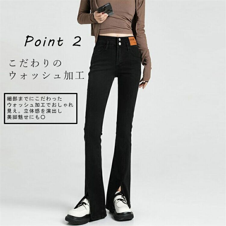 柔らかく伸縮性に優れたストレッチ素材を使用し、長時間の着用でも快適な履き心地を実現。バックポケット付きで美尻ラインを自然に演出します。