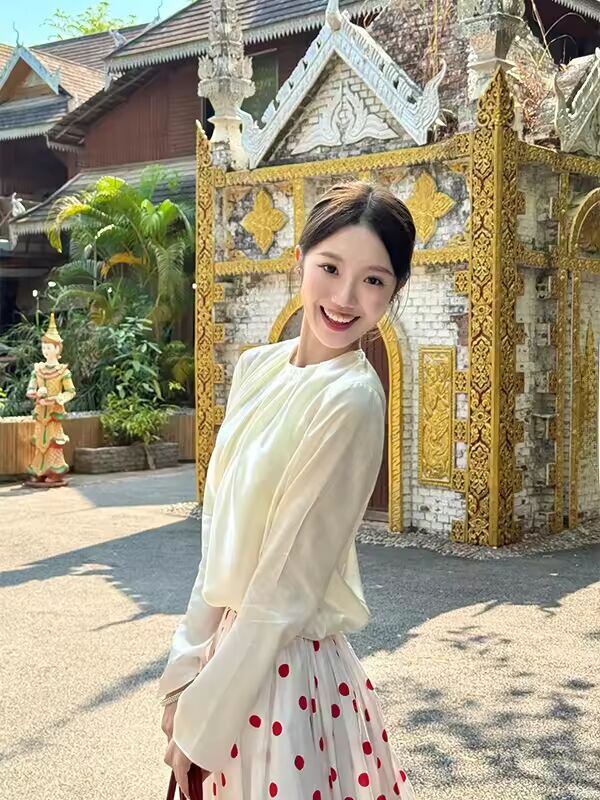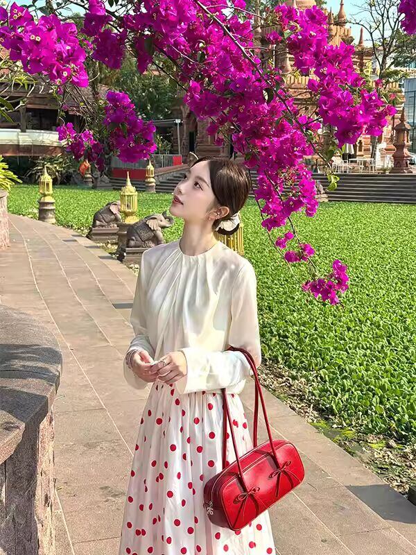【送料無料◎】 プリンセススタイル バブルヘム ミディスカート レディース ルーズフィット 水玉プリント スイートカジュアル ハイウエストスカート 大きいサイズ女性向け