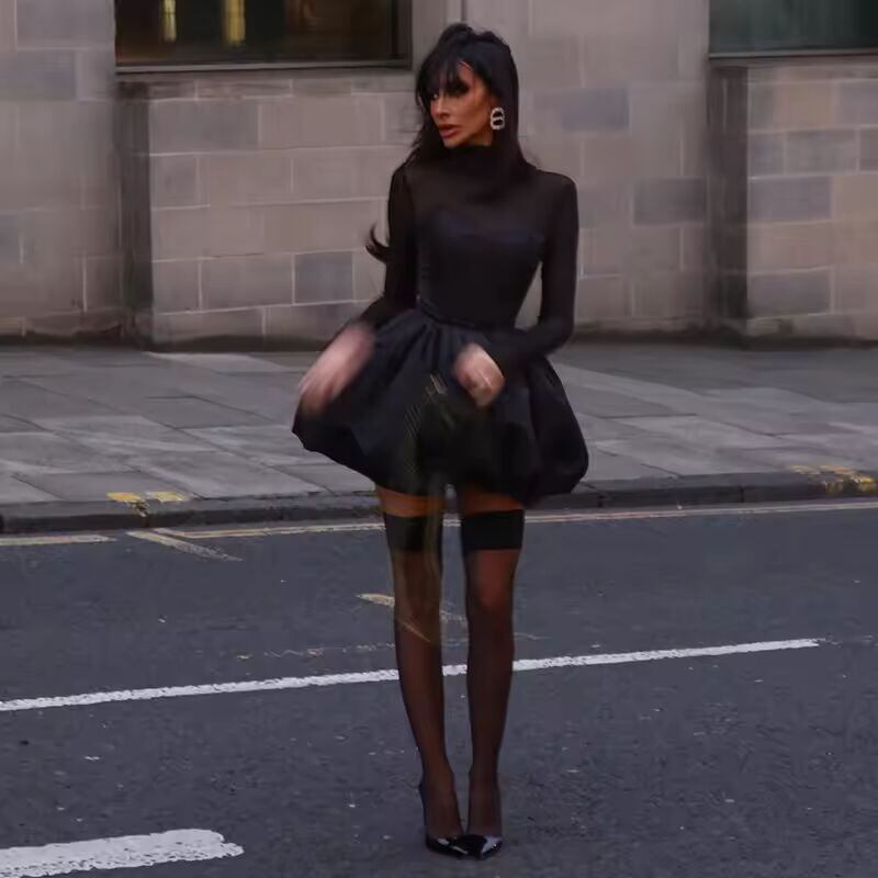 【送料無料◎】 セクシーなチュールドレス エレガントなハイウエスト バブルヘム ネットスカート スリミングデザイン レディライクスタイル ショートイブニングドレス デート用