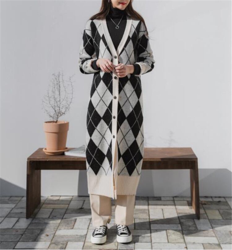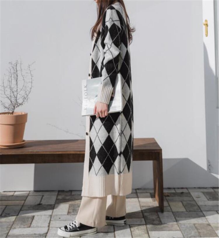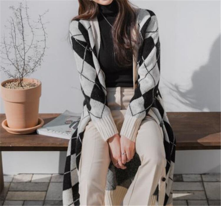 コート 女性 中・長セクション ニット 怠惰な風 ゆったりする ヤングスタイル ひし形