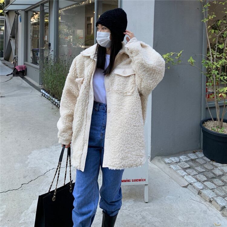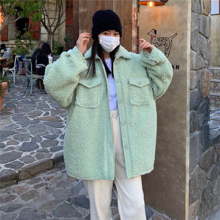 カジュアル ヤングスタイル 大人気 長袖 子羊の毛 コート 暖かい ピュアカラー