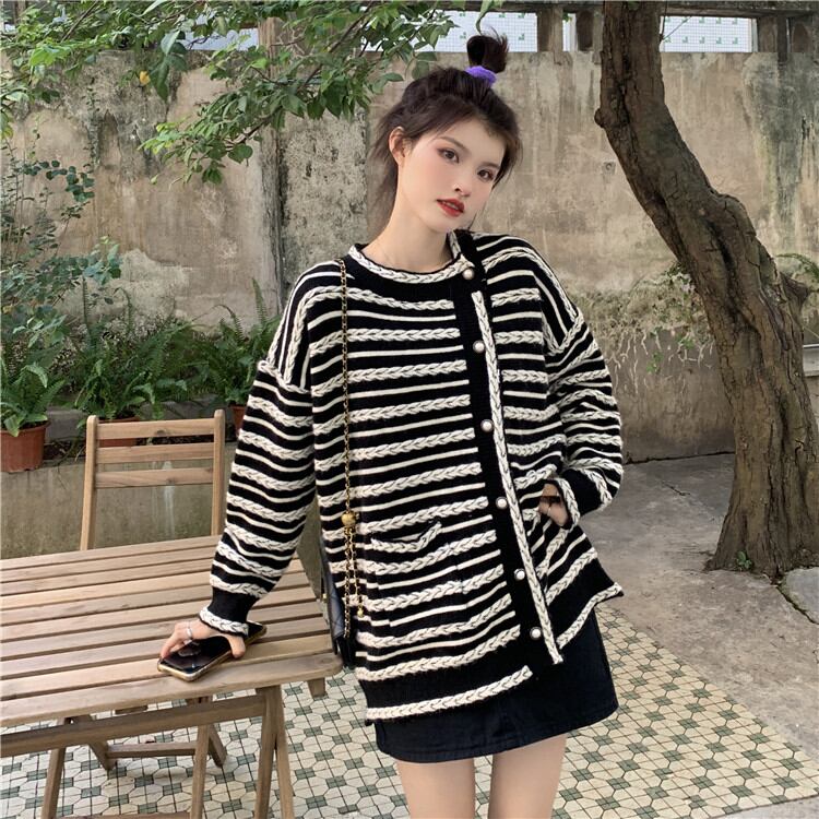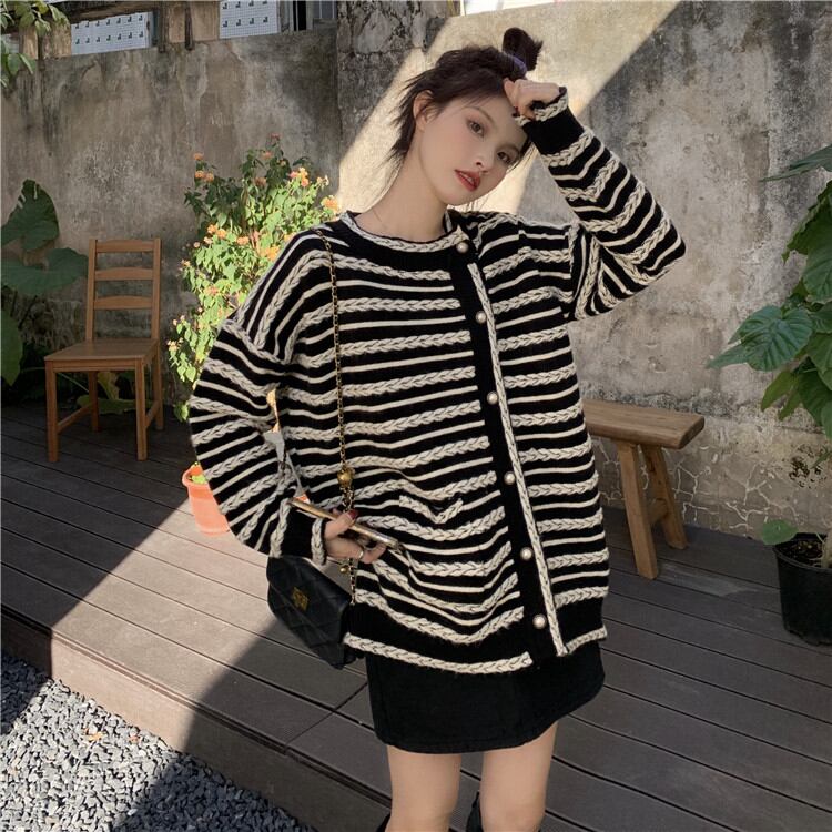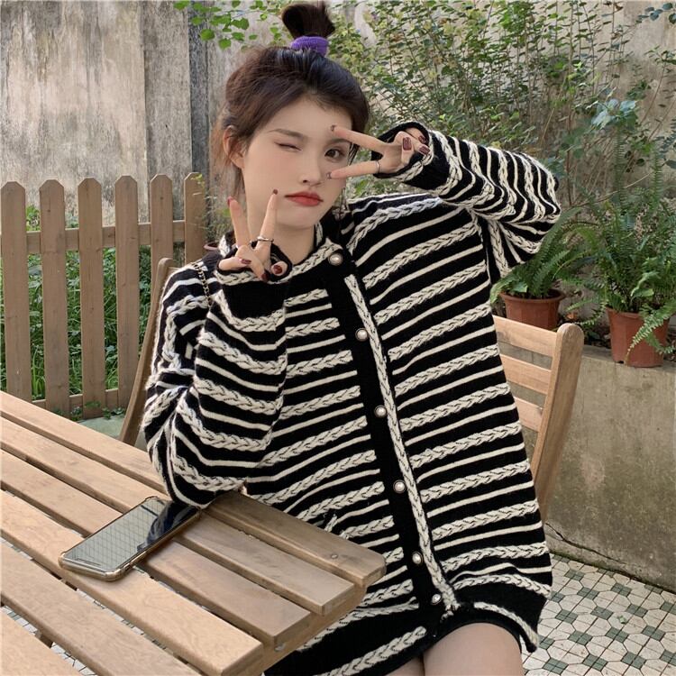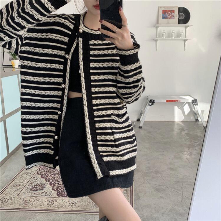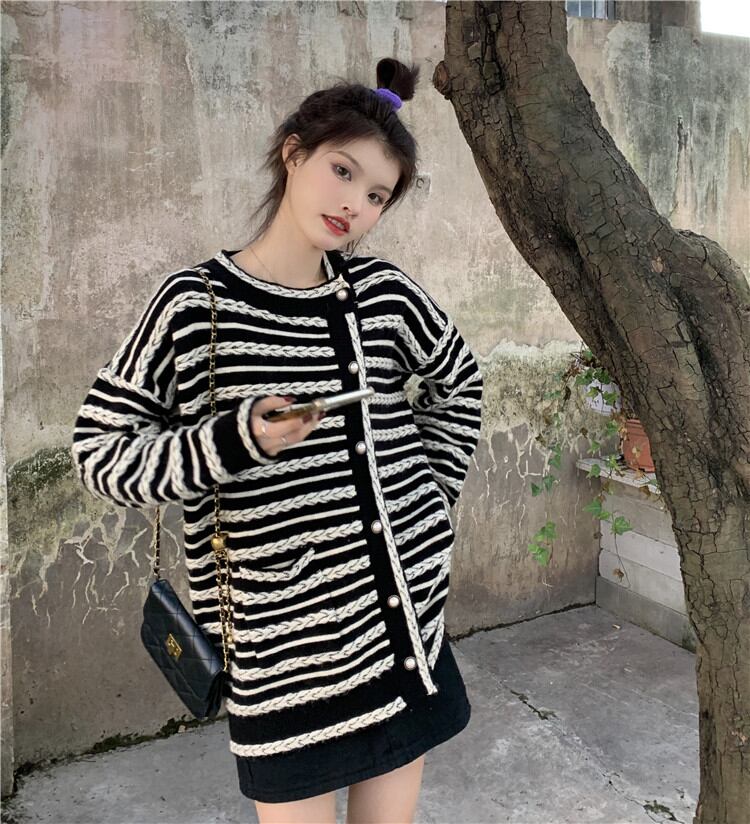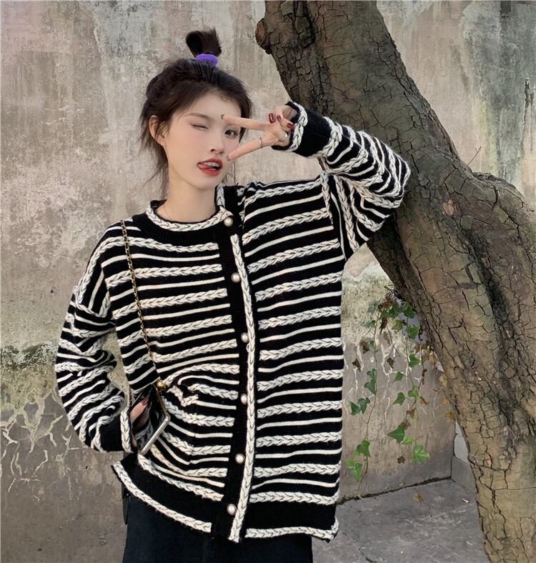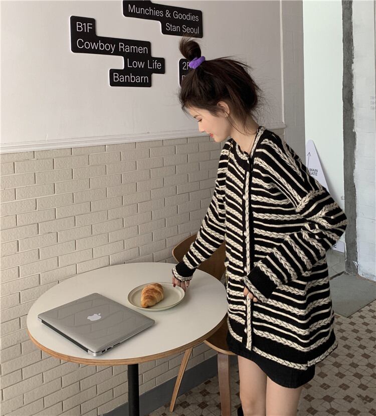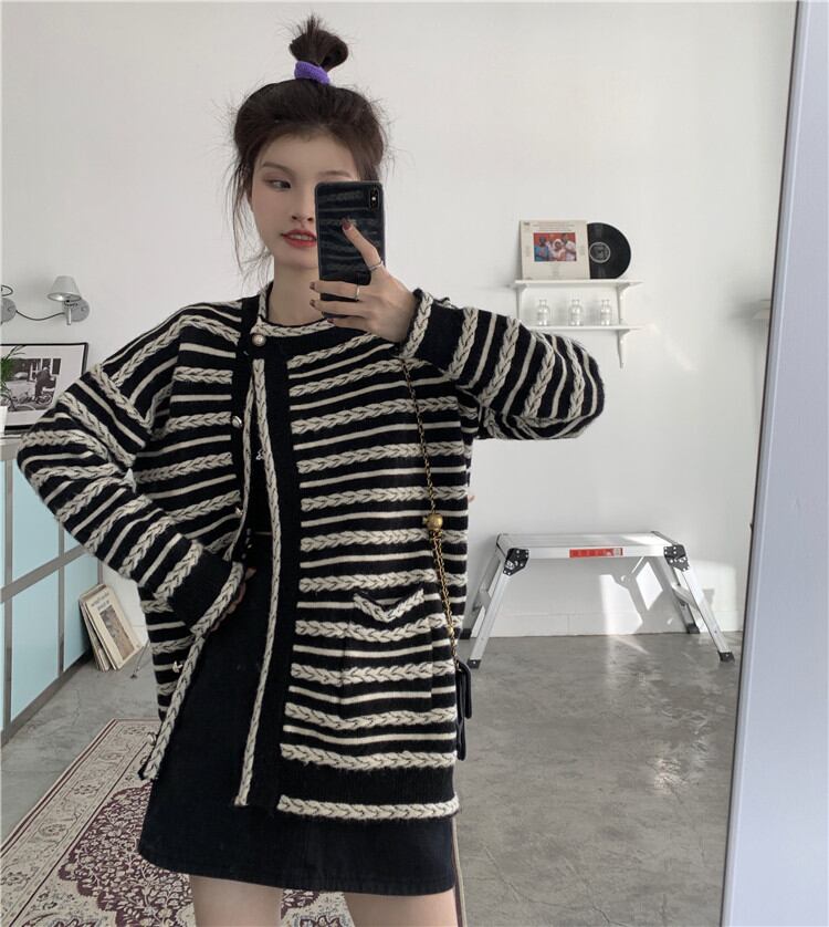 レトロ ボーダー ゆったりする スリム エレガント 気質 カーディガン 長袖 ジェントルスタイル