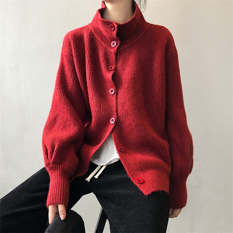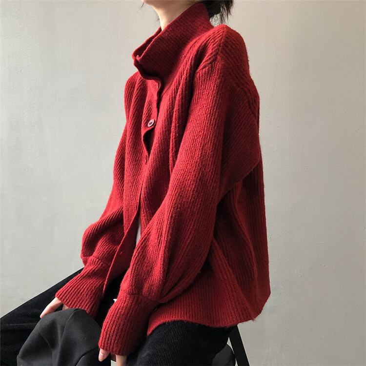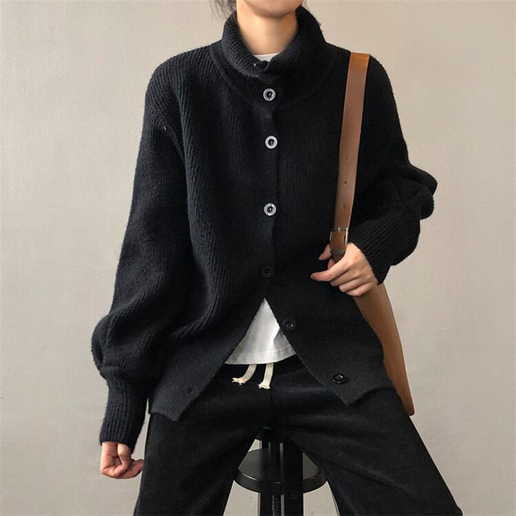 セーター 女性 2021年冬 新作 ゆったりする 怠惰な風 ニット カーディガン コート ピュアカラー