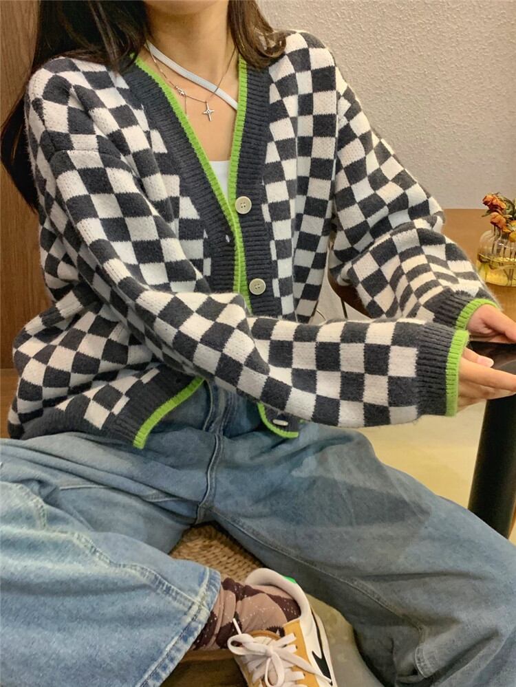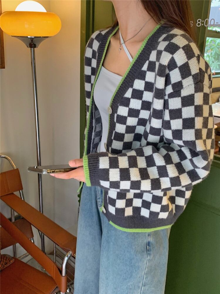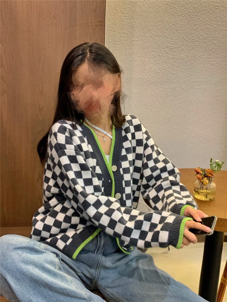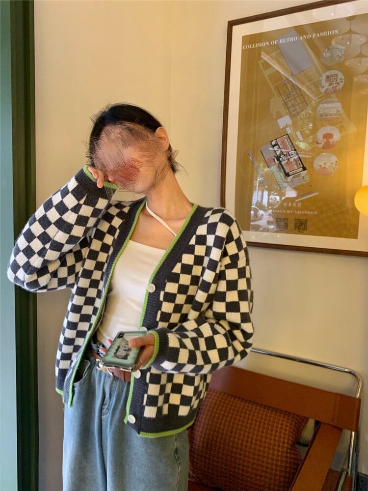 怠惰な風 コート カジュアル レトロ 暖かい 厚手 ニット チェック柄 短いスタイル