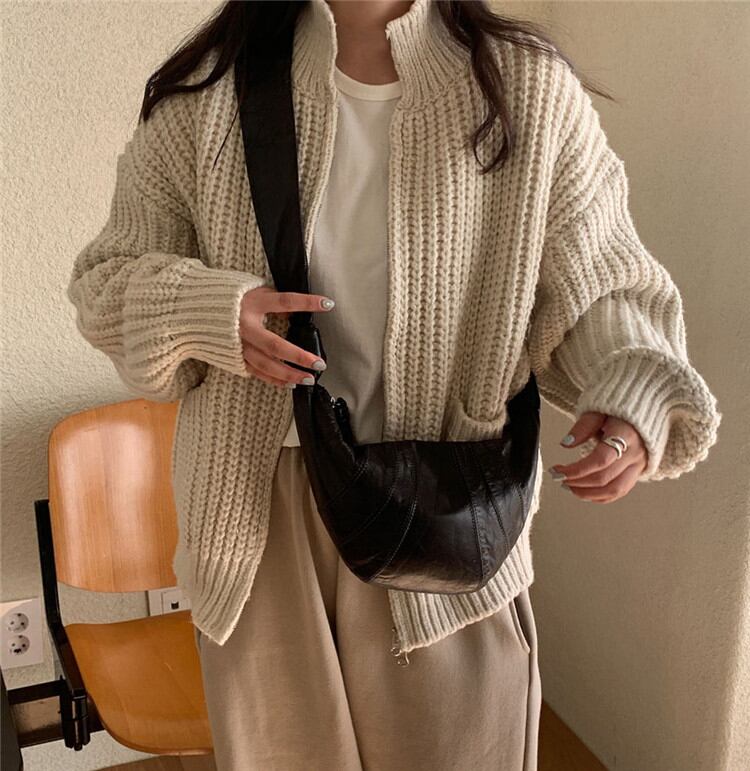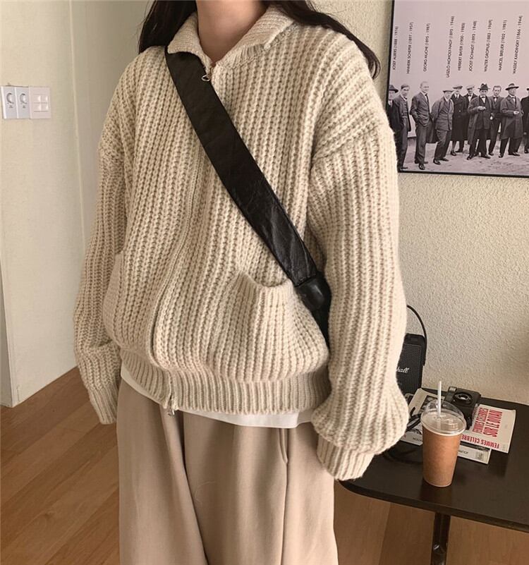 ◎【送料無料】カジュアルコーデのマストアイテム レトロ 暖かい 厚手 ジッパー ニット セーター カーディガン スタジャン