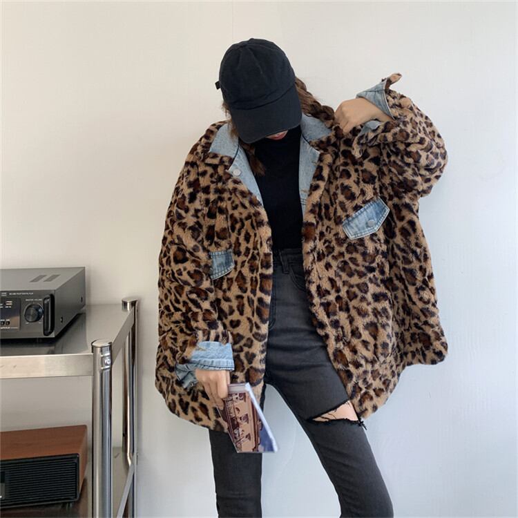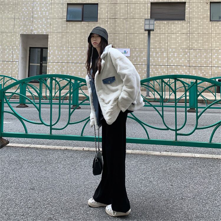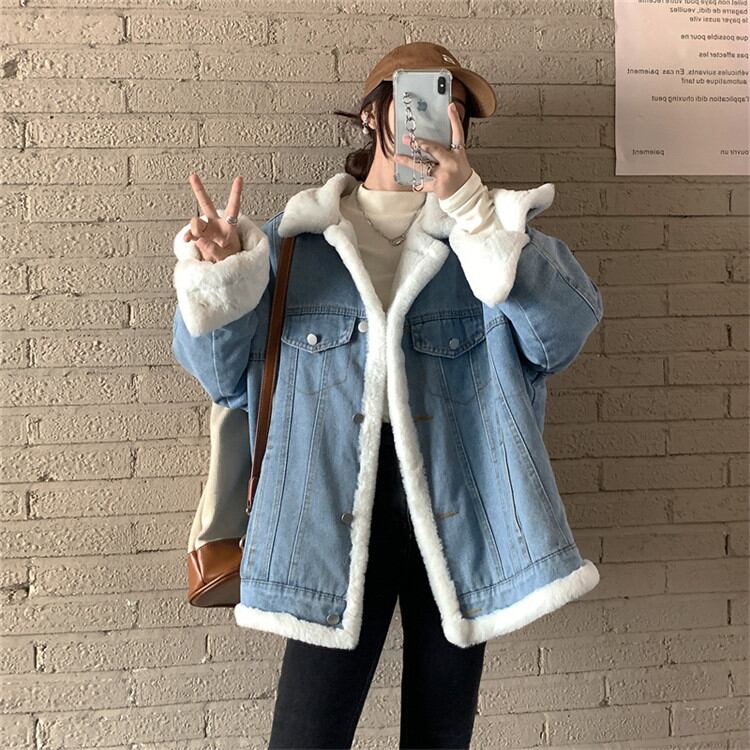 冬 厚手 両面の着用 デニムジャケット 裏起毛 うさぎの毛皮 コート レディース